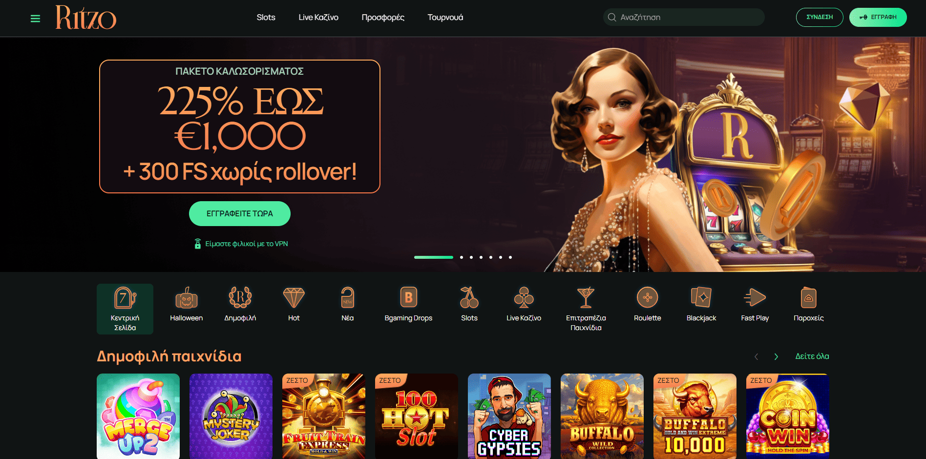 Ξεκίνησε τη λειτουργία του το 2024 και η πλατφόρμα Ritzo Cazino έχει ήδη κερδίσει 25.000 συν active users χάρη στα γενναιόδωρα promotions και την innovative gamification προσέγγιση. Με Curaçao license, δέχεται 15 cryptocurrencies και προσφέρει unique loyalty program με VIP levels που ξεκλειδώνουν cashback έως 20%. Διαθέτει 2.500 συν παιχνίδια, συμπεριλαμβανομένων exclusive titles που δεν βρίσκονται σε άλλες πλατφόρμες. Ενώ το spinstar προσφέρει 5% cashback και το 22bet μόνο 3%, εδώ το VIP πρόγραμμα είναι σαφώς ανταγωνιστικότερο.